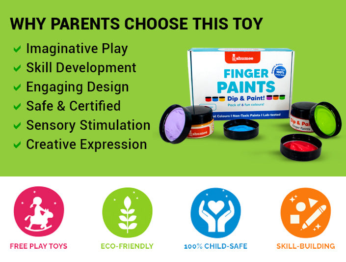 A: It is always recommended to use non-toxic, child-safe and sustainably produced finger painting kit for your little ones. Shumee’s DIY finger paint kit for kids holds all these qualities and is a must buy for all the creative little ones out there.