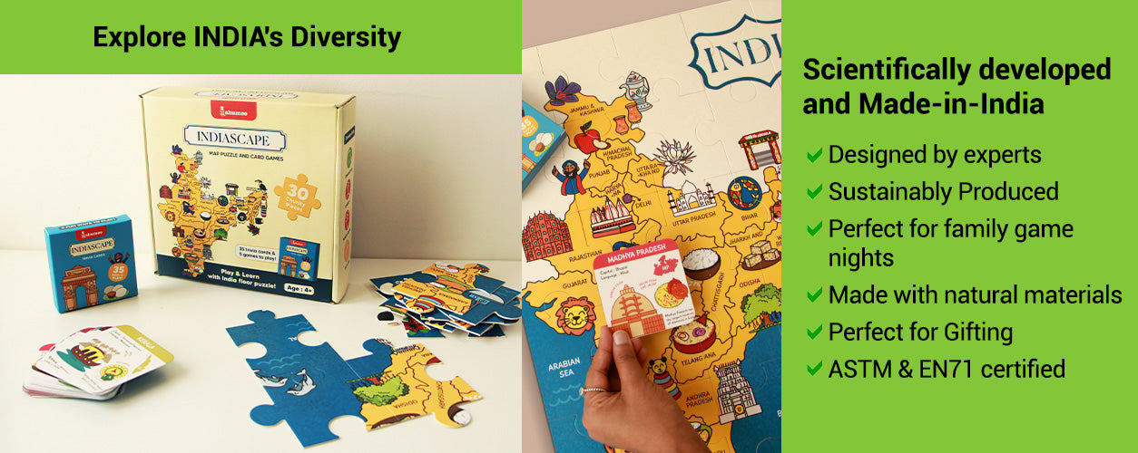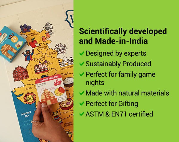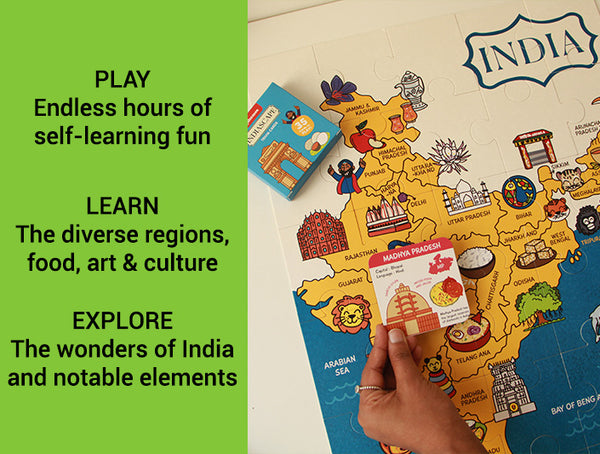 - Travel Game: Pretend to travel across India, using the puzzle as a map and the memory cards as places to visit, enhancing geographical knowledge and adventure-based learning.