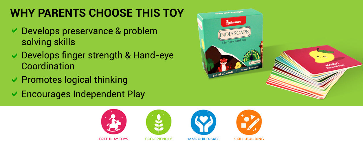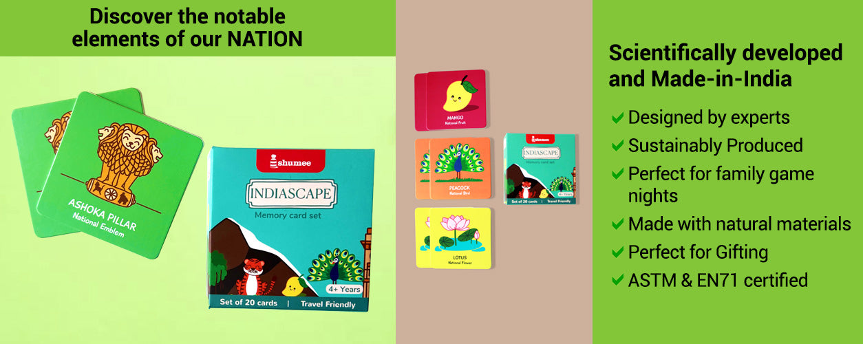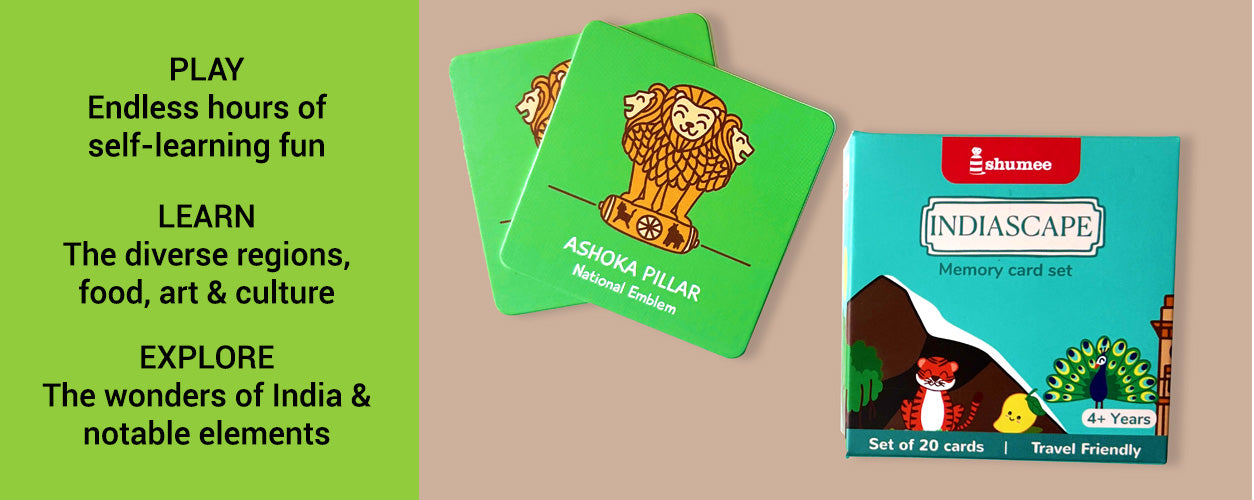Memory card game for kids is a matching game where children flip cards to find pairs. It improves memory and concentration skills. Indiascape memory card game is a great way to learn about India for kids.