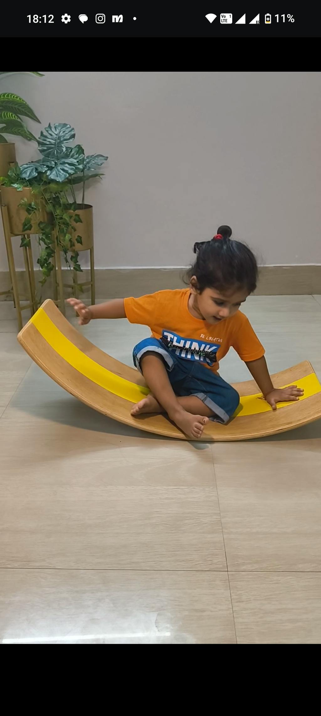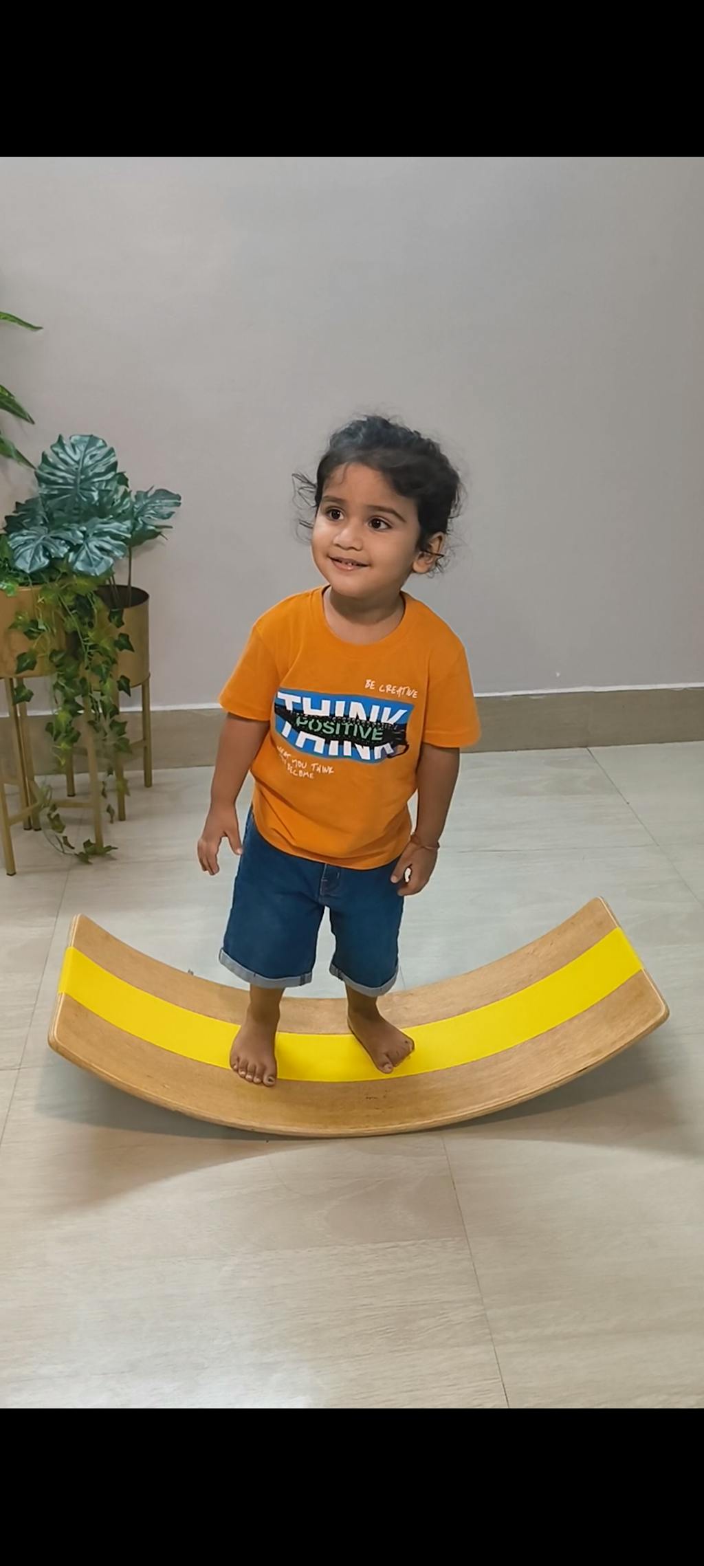 - Sensory development: The rocking motion of the curvy balance board soothes the child by improving their ability to manage their feelings and reactions to things around them.