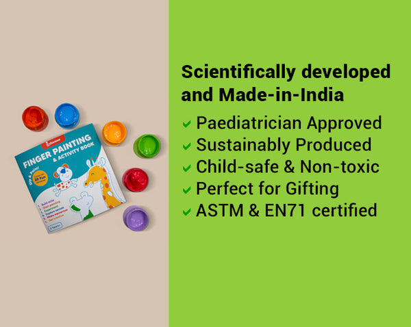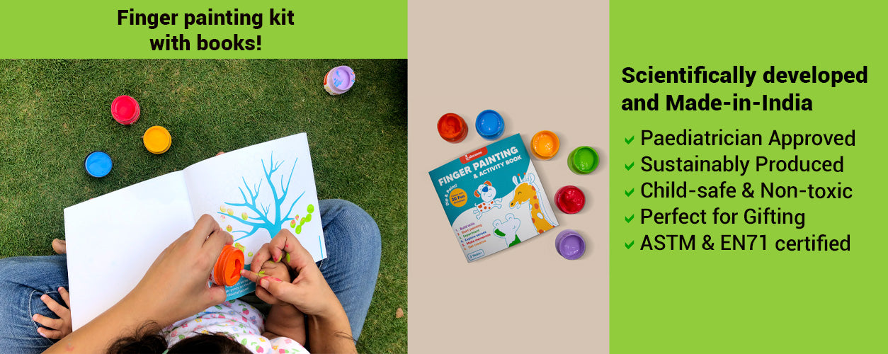 The activity book is a safe and mess-free way for kids to play creatively. Finger painting helps kids improve their vision by making them watch how paint moves, mixes colours, and forms patterns with their fingers.