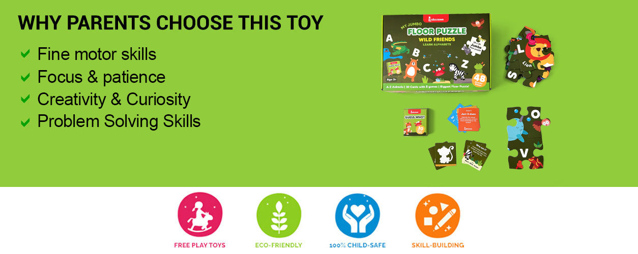 Unleash endless fun with our Jumbo Floor Puzzle! This wildlife animal puzzle for kids introduces animals and the alphabet in a vibrant, interactive way, offering exciting educational benefits. Let’s read about them.