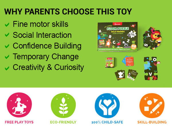 Unleash endless fun and learning with our Jumbo Floor Puzzle! This vibrant adventure introduces children to various animals while engagingly teaching the alphabet. Discover the exciting benefits of playtime with these interactive and educational features.