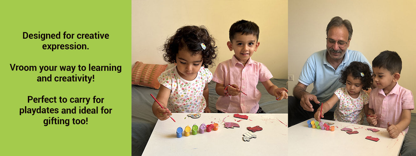 The Paint Your Own Magnetic Art kit (Vehicle-theme) is specifically designed as an outlet for creative expression. Children watch vehicles around them daily and this art set is the perfect way for them to reimagine what cars, buses, trucks would look like if they were allowed to colour them. In addition to creative expression, children will get a boost of confidence as their artwork is displayed proudly!