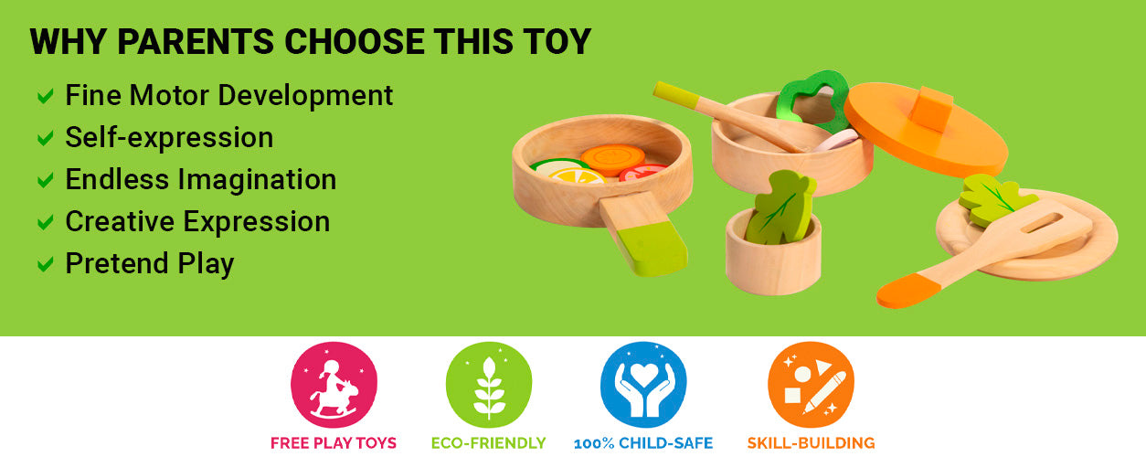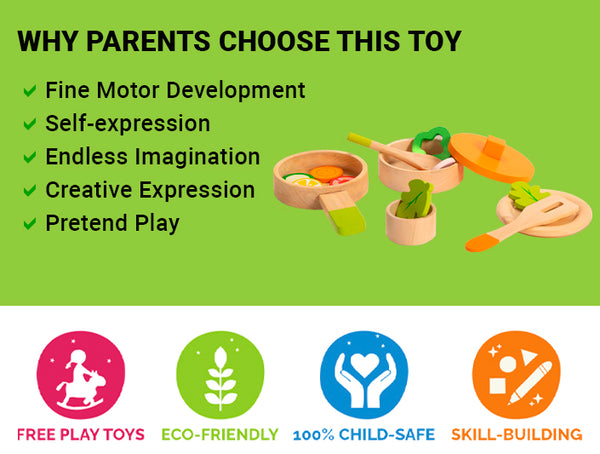 Playing with wooden cooking sets has many benefits for children. Some of the benefits are: